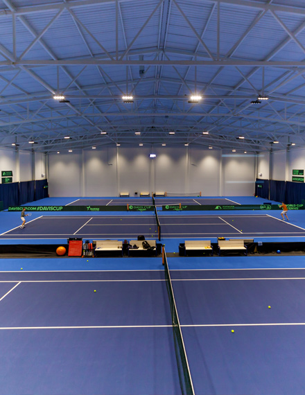 6 крытых хардовых кортов 4 открытых грунтовых корта